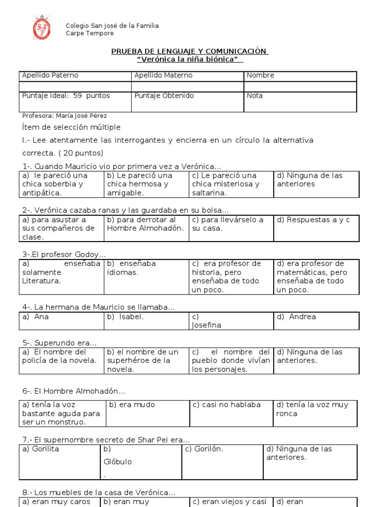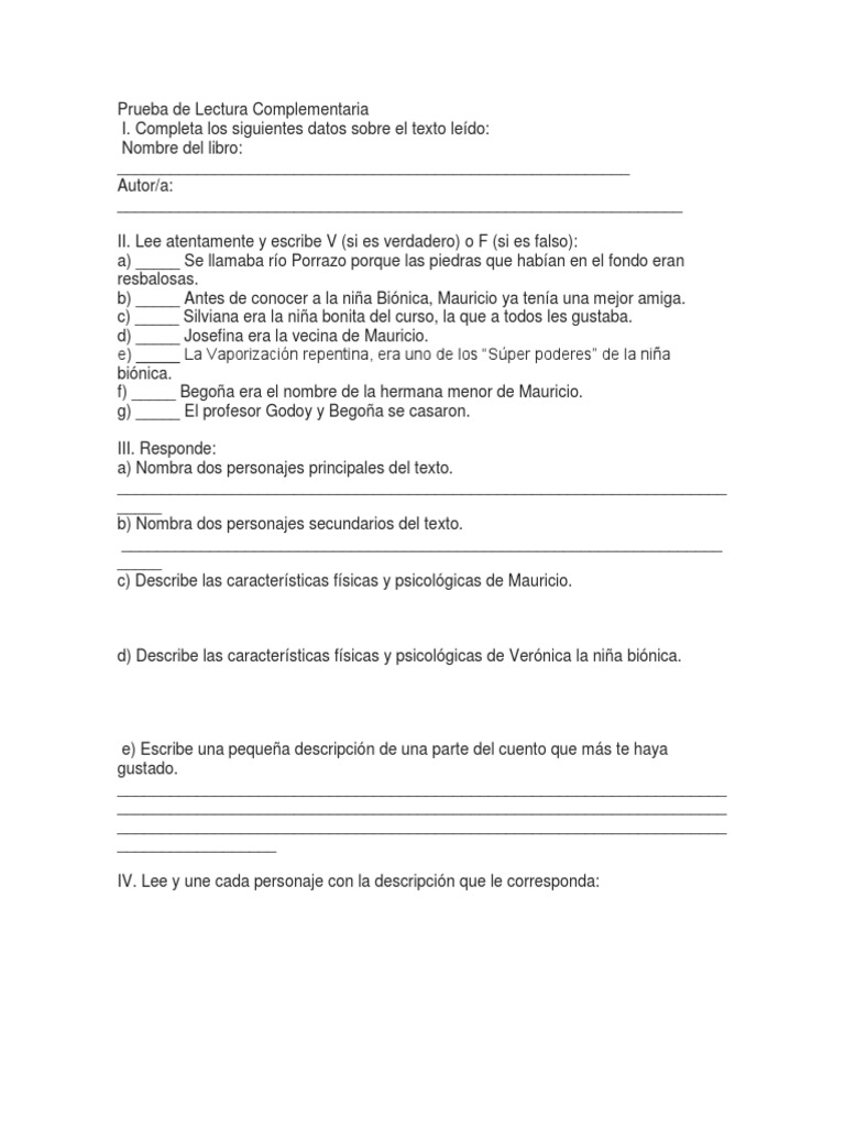 Prueba De Veronica La Nina Bionica Pdf Ocio